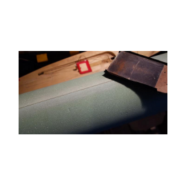 I repositioned some of the tape to keep the pressure on and as the epoxy takes around 24 hours to properly cure, left the tube to set. Once set the masking tape was removed and an epoxy filled but small gap was left protruding slightly. I sanded the gap flat and cleaned up a few drops of epoxy had run down the sides of the balsa and lay more carbon fiber over the tube. I applied more resin to the carbon and, when finished, wrapped the whole tube in electrical tape.